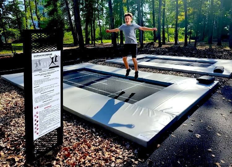 ВСТРАИВАЕМЫЙ БАТУТ - НАХОДЯЩИЙСЯ НА УРОВНЕ ЗЕМЛИ - ЭТО ЛУЧШЕЕ РЕШЕНИЕ ДЛЯ ВАШЕГО ДАЧНОГО УЧАСТКА ИЛИ СПОРТИВНОЙ ПЛОЩАДКИ: